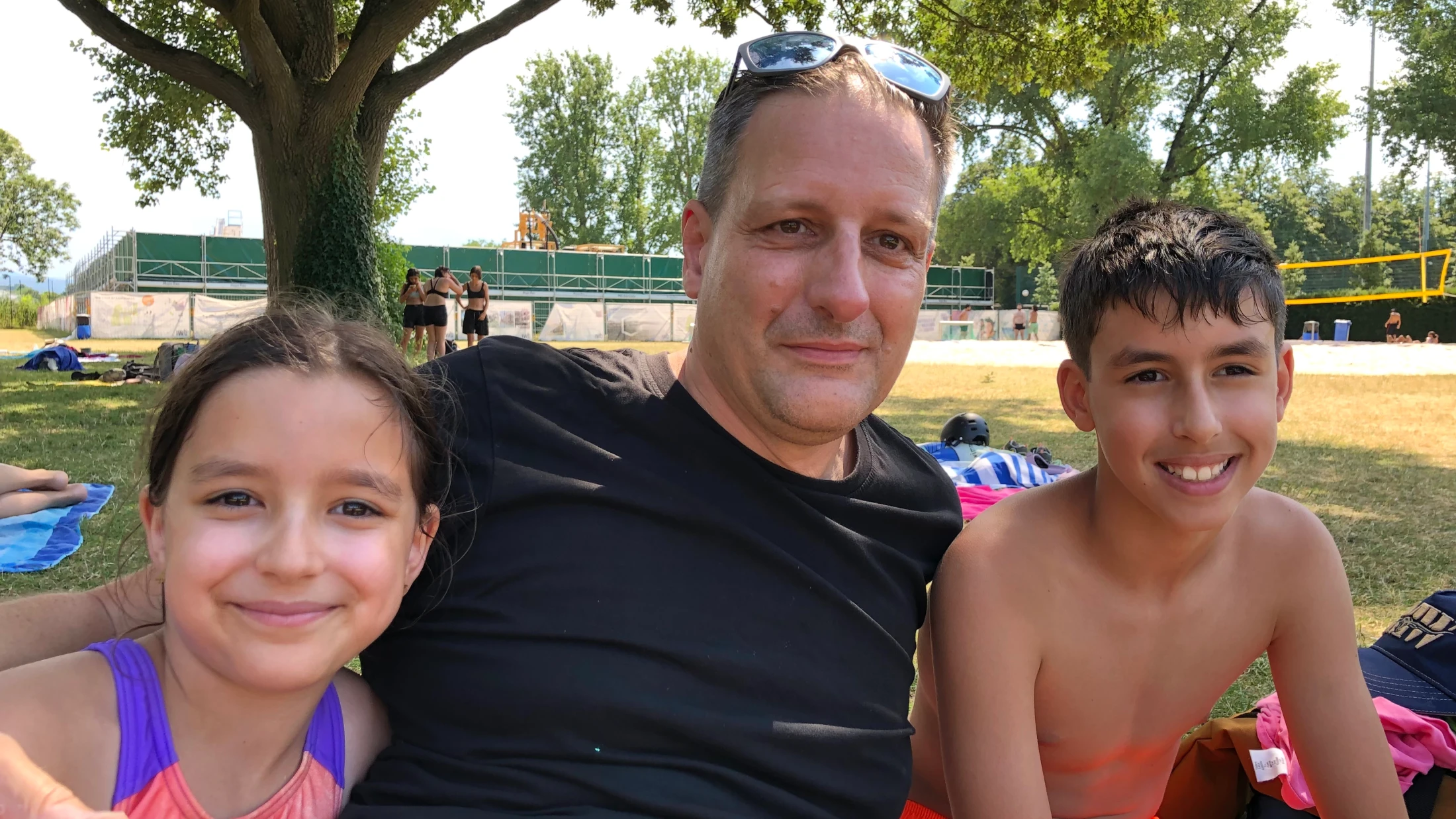 Eugenio geniesst mit seinen Kindern den Sommer im Joggeli