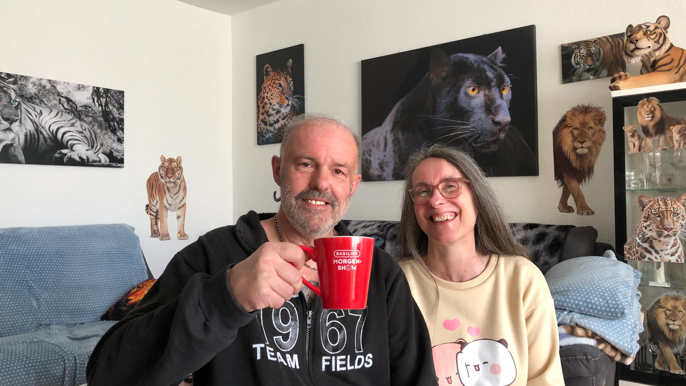 René wurde diese Woche von Morgenshowreporter Mirco überrascht. Nicht nur Kaffee wurde getrunken sondern es wurde auch das spezielle Haustier bestaunt.