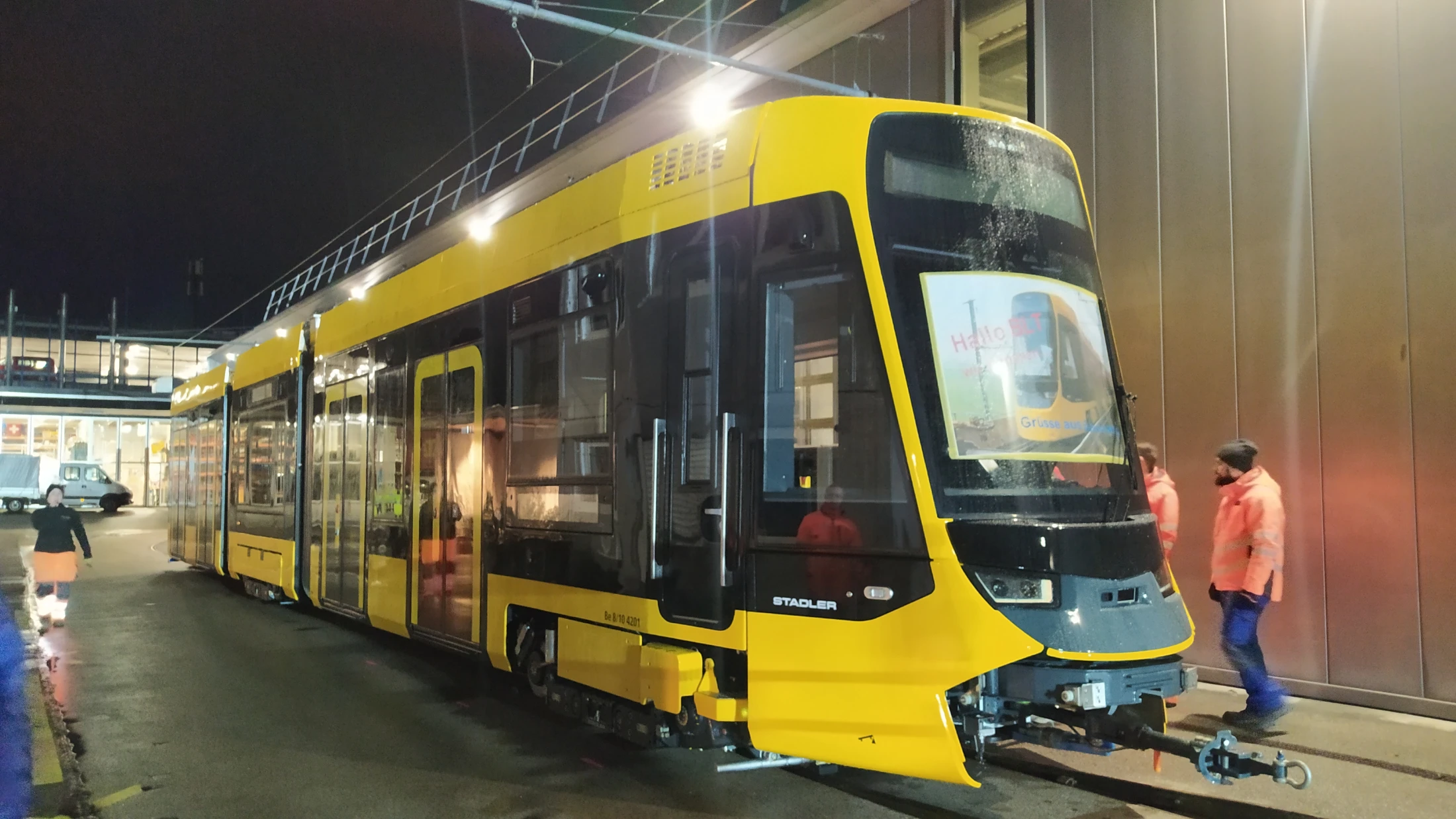 Das erste TINA Tram der BLT ist in Oberwil angekommen.