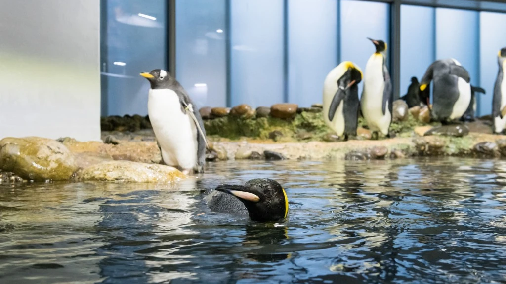 Beim Putzen riecht es nach altem Fisch und der Boden ist rutschig. Dafür freuen sich die Pinguine um so mehr, wenn das Becken nach sechs Stunden wieder gefüllt ist und sie wieder abtauchen können, im 8 Grad warmen Wasser.